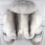 Futro z lisa White Silver Fox to synonim luksusu i ponadczasowej elegancji. Charakteryzuje się długim, jedwabistym włosem o wyjątkowej biało-srebrnej barwie, która subtelnie połyskuje w świetle, tworząc efekt głębi i szlachetności.Biało-srebrny lis uznawany jest za jedną z najbardziej ekskluzywnych odmian, cenioną za rzadkość koloru i szlachetną fakturę.